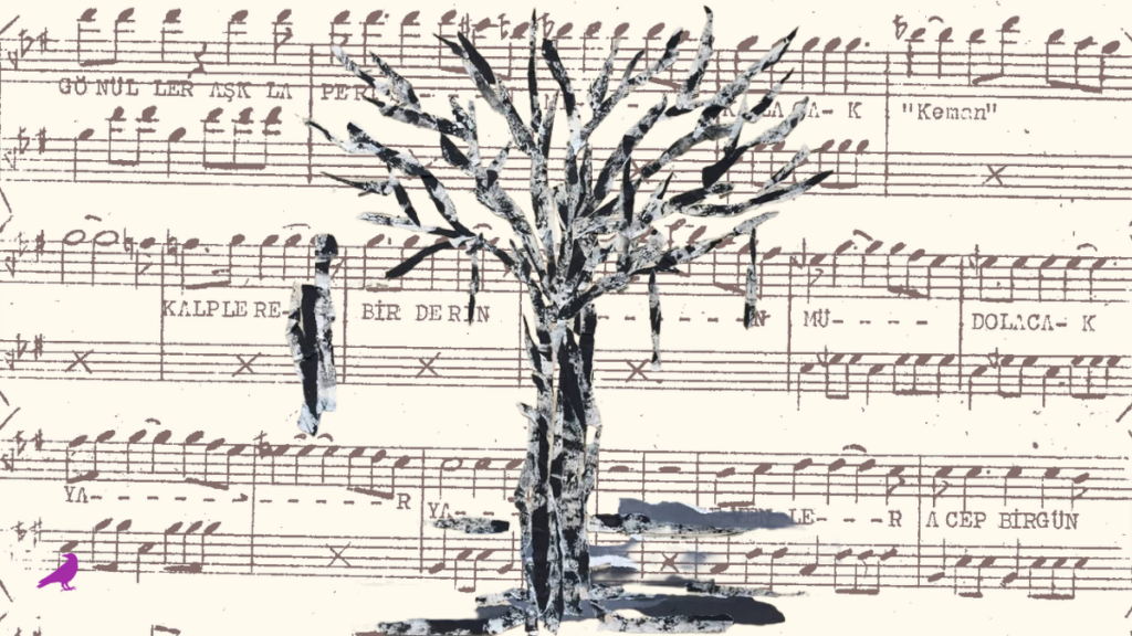 Parmakları rahat bir tavırla klavye üzerinde gezinmeye başlayınca, kulaklarımızı hisli notalarla buluşturdu. Notalara öyle hâkimdi ki tek bir hata yapmadan, perdesiz sap üzerinde örümcek gibi parmaklarıyla gezinmeye başlamıştı. Bu rahatlığın yanında, notalara duyguyu da katan icrası onu gerçek bir sanatçıdan farksız kılıyordu. Bu hisli icrasıyla karşıya duyguyu yoğun bir şekilde geçirip, sesleri eksiksiz ve berrak bir şekilde çıkarmaya başlayınca “Allah’ım, nasıl bir yetenek bu?” diye geçirdim içimden. Gözlerim gittikçe yerinden fırlayacak şekilde büyüyordu. Elimde olmadan ağzım açık halde perdesiz klavyede gezinen mahir ellerin kıvraklığına diktim gözlerimi. Bu adam inanılmaz bir yetenekmiş. Taksimden sonra karar kıldığı bir makamda dolandı durdu elleri. Parmakları notalarla buluştukça gözleri cezbeye kapılmış birinin gözleri gibi kısılıp açılıyordu. Acı mı huzur mu hissettiği anlaşılmıyordu. Ağzında anlaşılmaz, belirsiz hareketler… bir şey diyecekmiş ama kendini tutuyormuş gibi kıpırtılar. Sanki haykıramadığı çığlıklarını içine bağırıyordu. Bir şeyler söylüyor ama sesler, kelimeler hep boğazından aşağıya akıyordu. Tuttuğu kelimelerin dışarıya salınamaması yüzünde ve ağzında tuhaf seğirmelere sebep oluyordu.