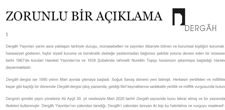 Dergâh Yayınlarından Zorunlu Açıklama